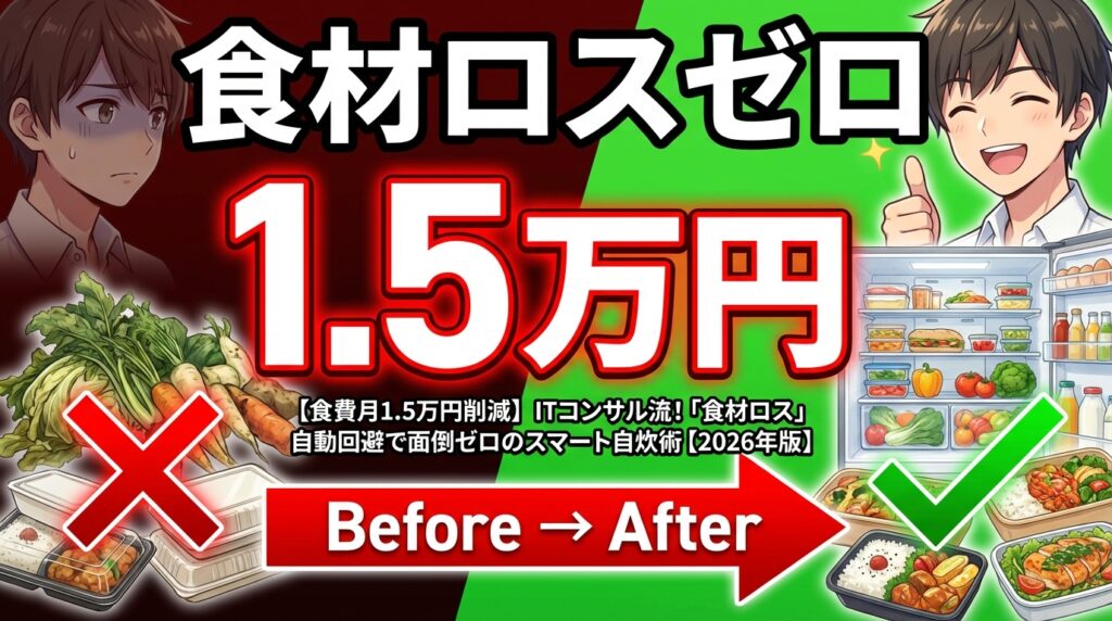 【食費月1.5万円削減】ITコンサル流!「食材ロス」自動回避で面倒ゼロのスマート自炊術【2026年版】