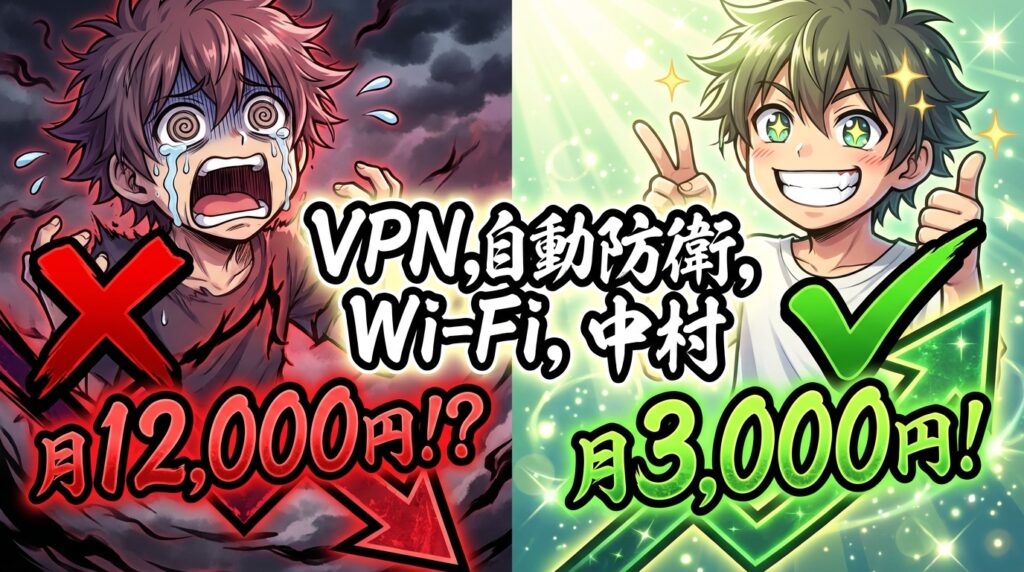 公共Wi-Fiの危険から個人情報を守るには?ITコンサル中村が面倒くさがりでも「放置で安心」できるVPNの選び方と簡単な設定術を徹底解説。自動防衛機能であなたのデジタルライフをハック! -