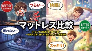 本記事では、面倒くさがりの私でも納得できた「失敗しないマットレス選びの自動化戦略」をITコンサルの視点で徹底解説します。