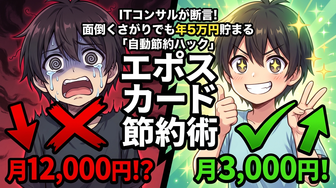 この記事では、ITコンサルタントとして「自動化」を追求してきた私が、なぜ「エポスカード」が面倒くさがりのあなたに最適なのかを徹底解説します。具体的な活用術から、年間数万円単位で節約できる具体的な方法まで、余すことなくお伝えします。