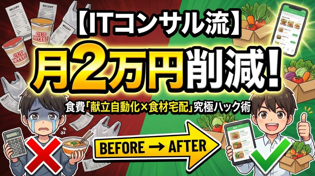 【ITコンサル流】面倒くさがりでも食費を月2万円削減!「献立自動化×食材宅配」究極ハック術